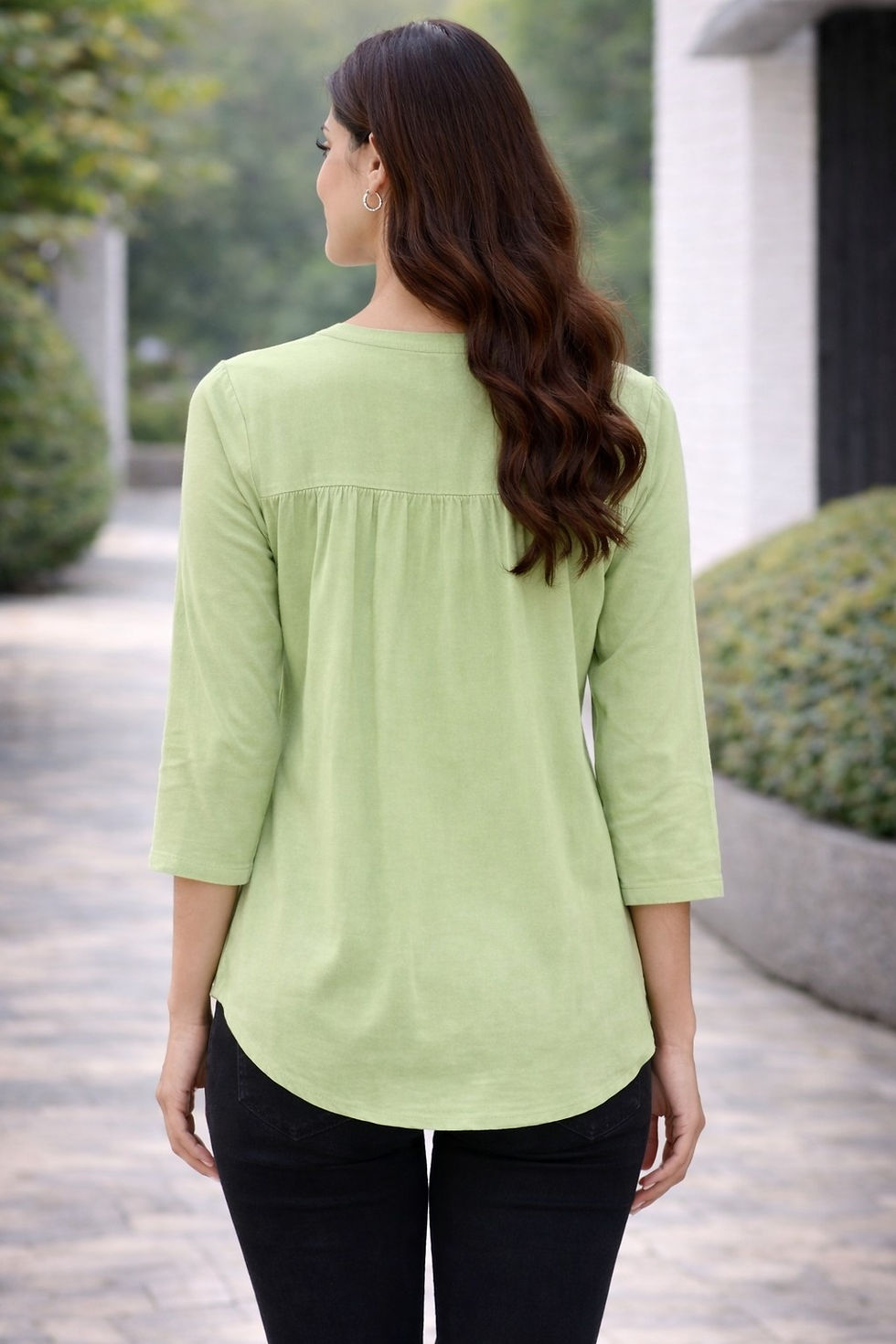 Women Olive Sage Green Solid V-Neck Three-Quarter Sleeve Formal Tunic Top